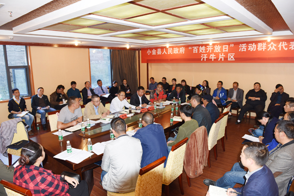 十九大召开期间,小金县四个片区的两委员一代表、县政府县长、副县长、县级各门主要负责人齐聚一堂,以政府“百姓开放日”活动的形式,讨论学习十九大报告、听取群众心声、干群深入交流、齐心描绘小金发展新篇。