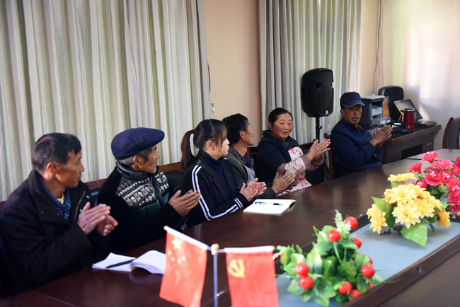 他还说,“从村口一路上来,看到大坝村的面貌发生了翻天覆地的变化,我们大坝村投入22万,建设了11户藏区新居;投入62万,实施了幸福美丽新村建设;投入336万元,硬化了村组道路并实施了窄变宽工程;引进了中核汇能公司开发光伏资源,每年为村集体经济带来35万元收入……看到我们的老百姓都逐步过上了好日子,看到大家脸上洋溢的笑容,感到由衷的欣慰和高兴”。