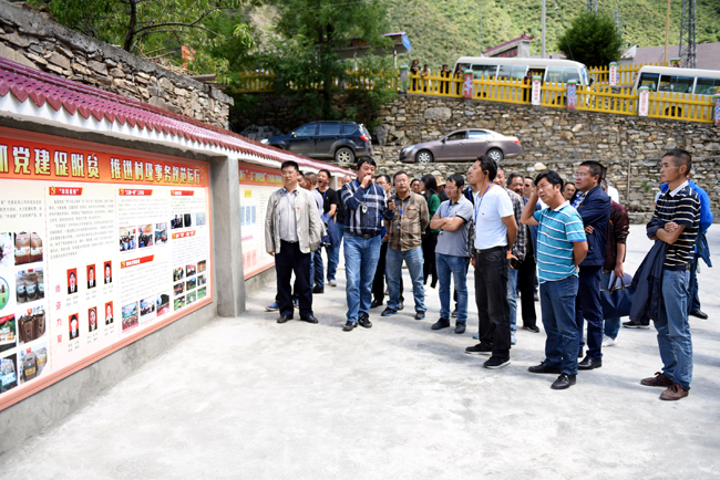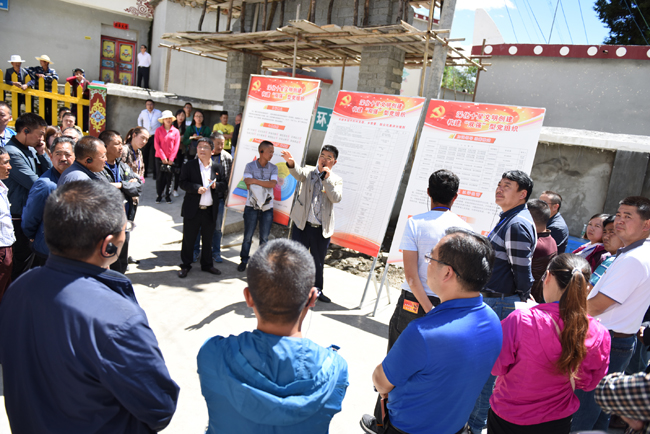 现场观摩“看”,强交流。以现场观摩的方式设身处地看、面对面谈,增强参与性、互动性。与会人员先后来到两河口镇、木坡乡、达维镇等党建示范点现场观摩学习。在两河口镇,观摩学习了镇村两级标准化建设规范化管理;参观了大板村农民夜校实践点。在达维镇,观摩学习了“红色+1+2+3”党建工作法;冒水村以“支部+能人+农户”产业发展模式带动群众增收致富。在木坡乡招牛村观摩学习了“星级创评”管理模式,美兴镇大坝村观摩学习了“党员中心户+”模式、集体经济收入分配方式在促进群众增收致富的新应用。同时,进行随机抽问和现场交流,乡、村党组织书记和驻村第一书记围绕加强乡村标准化建设、提升基层治理水平、联系服务群众、推动精准脱贫等方面进行探讨交流。