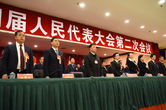 上午9时,小金县第十四届人民代表大会第二次会议再庄严的国歌声中开幕。
