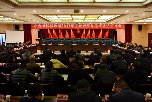 按照省委、省政府《关于进一步加强深度贫困县脱贫帮扶工作意见和省脱贫办《关于印发四川省2017年脱贫攻坚成效交叉考核》、第三方评估和专项考核工作方案的通知要求》,1月3日下午,省级交叉考核评估组到我县开展2017年度脱贫攻坚考核评估,并召开汇报会。县委书记毛端喜,县委副书记、县长姚奇杰出席座谈会,县委副书记袁剑敏、刘明刚,县委常委、政法委书记刘显凡,县委常委、统战部长李贵亮,副县长靳福超及小金县脱贫攻坚领导小组参加汇报会。