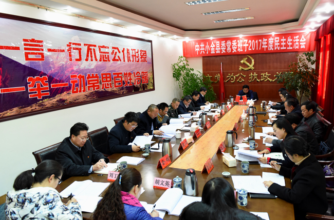 会上,县委书记毛端喜通报了县委班子2016年民主生活会查摆问题整改落实情况,以及县委班子2017年民主生活会意见征求情况,并代表小金县委班子作了对照检查,与会人员对县委班子进行了评议,提出批评和建议。毛端喜带头作个人对照检查发言,其他常委也逐一进行了个人对照检查发言,开展相互批评,并提出指导意见。大家直言不讳、开诚布公、“辣味”十足,自我批评“不遮不掩”,批评同志“不留情面”,每位常委诚恳地接受批评,并对收到的批评意见作了整改承诺表态。